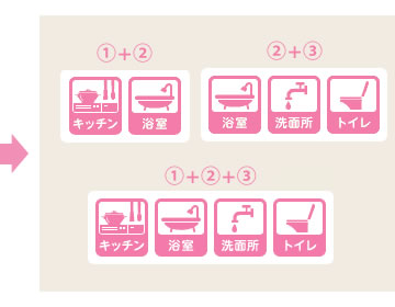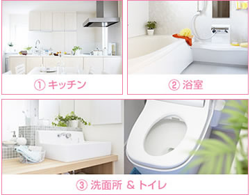 お手入れの面倒な水まわり(キッチン、浴室、洗面所、トイレ)だけをご要望に合わせて定期的にお掃除!